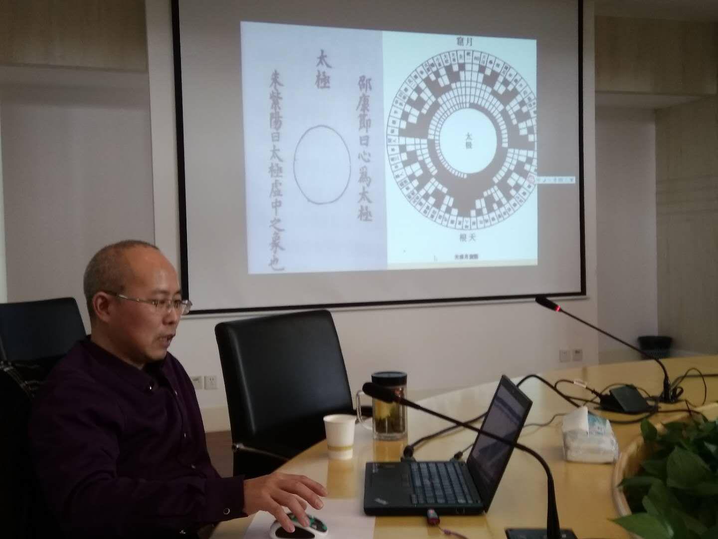课题主持人宋锡同老师首先就近期课题研究进程遇到的几个关键问题进行了说明,然后就元代俞琰如何将邵雍先天易学进行道教化阐发等问题作了报告。