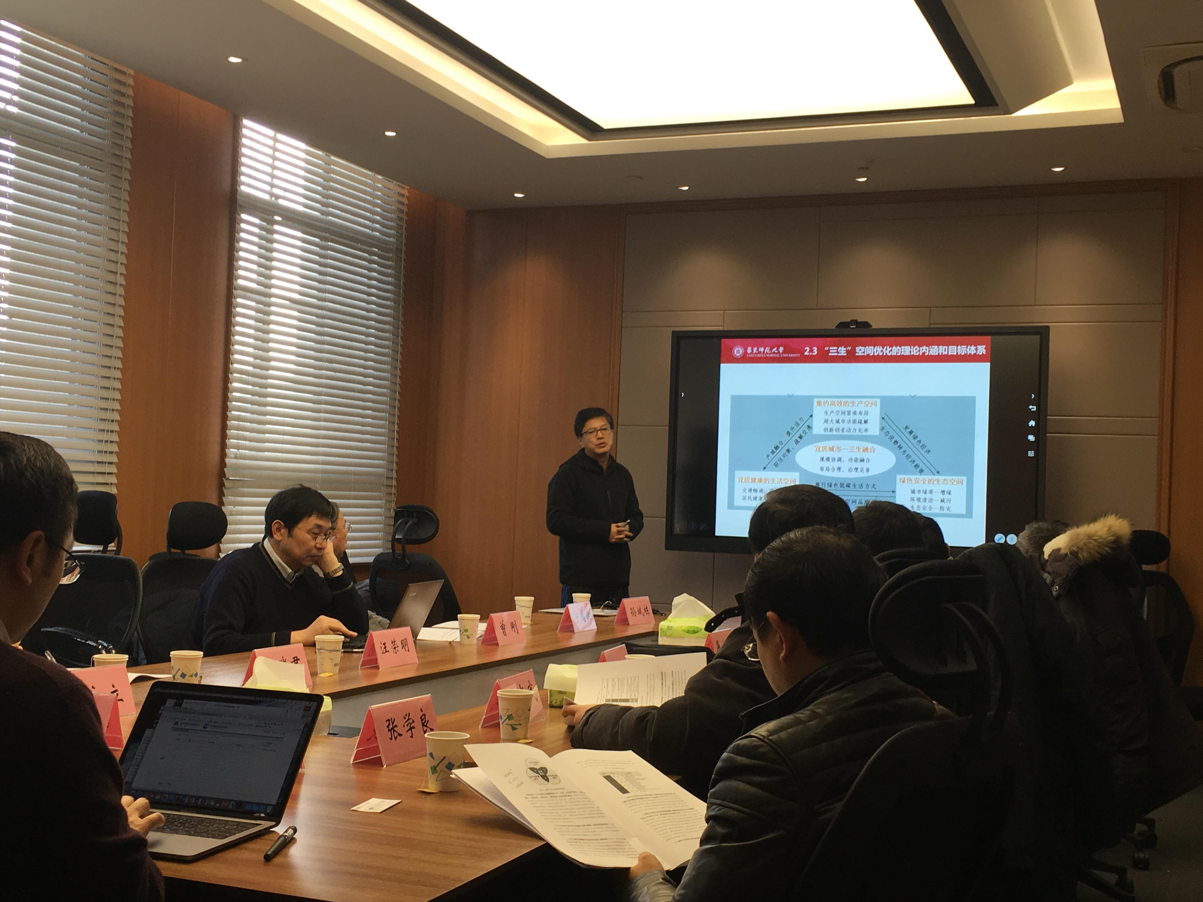 在专家组组长李国平教授的主持下,孙斌栋教授系统地汇报了课题计划。首先,从“三生”空间优化对建设生态文明、实现国土优化开发的关键性及其战略的重要性等方面阐述了本课题的研究缘起。基于对已有研究不足的梳理,提出本课题的核心议题。其次,从六个方面系统地论述了课题的研究框架,包括城市“三生”空间的概念界定、现实问题及实践政策评价;三生”空间优化发展的理论基础和国际经验;“三生”空间优化的理论内涵和目标体系;“三生”空间技术支撑研究;“三生”空间优化发展的评估体系与影响因素研究;促进“三生”空间优化发展的空间区划、治理措施和保障机制建议。随后,阐述了各子课题的主要研究内容及与总课题相互间的关系。最后,在阐明本课题的理论、实践应用及服务决策方面的预期目标后,孙斌栋教授总结了本课题的创新和推进之处,具体体现在城市“三生”空间优化分析的系统综合性、对城市“三生”空间优化的一般规律研究、以社会经济活动和个人行为取代现有研究以物质要素作为“三生”空间划分依据、推进“三生”空间的国家战略在城市尺度上的具体细化和落实等方面。