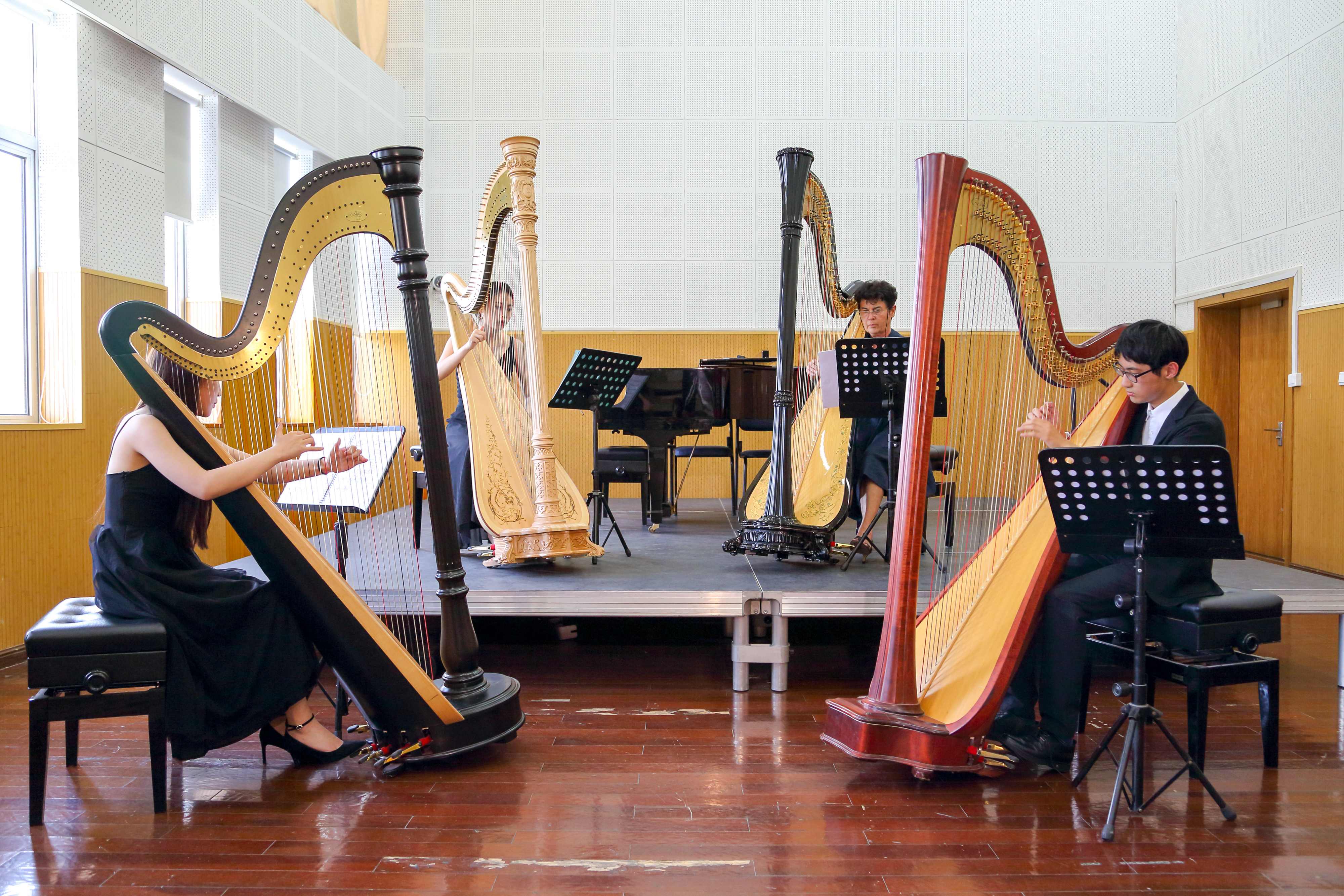 讲座结束后,音乐系竖琴专业的本科生和研究生演奏了西方古典及浪漫时期的竖琴经典作品:法国作曲家Gabriel Faure的《Impromptu for Haro in D-Flat Major,Op.86》等及部分中国的竖琴代表作:根据古曲改编的竖琴独奏《渔舟唱晚》等,最后赵佳琳老师和Rossi教授演奏了Jean Baur竖琴重奏 《降B大调奏鸣曲No.4》 ,Rossi教授和音乐系三位学生演奏了西班牙风格的竖琴四重奏将音乐会推向了高潮。橙程成: 本次大师班的教授、竖琴家——Lisetta Rossi来自意大利佛罗伦萨。她目前在拉斯佩齐亚的“Giacomo Puccini”音乐学院担任竖琴教授。从2003年到2010年,她在米兰的G. Verdi音乐学院担任教职,教授高级竖琴以及音乐历史,分析竖琴剧目,器乐教学法和竖琴合奏。自1994年以来,许多年轻的竖琴演奏家参加了她在意大利,法国,英国,葡萄牙和保加利亚举办的夏季课程,研讨会和大师班,因此她的艺术和专业经验在教学中反应出来 - 不仅仅只作为独奏者,也作为室内乐团和管弦乐队的一部分。